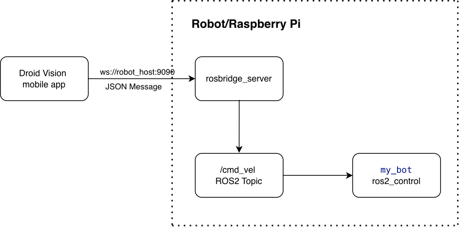 To control the robot using the Droid Vision app, I utilized Rosbridge WebSocket.