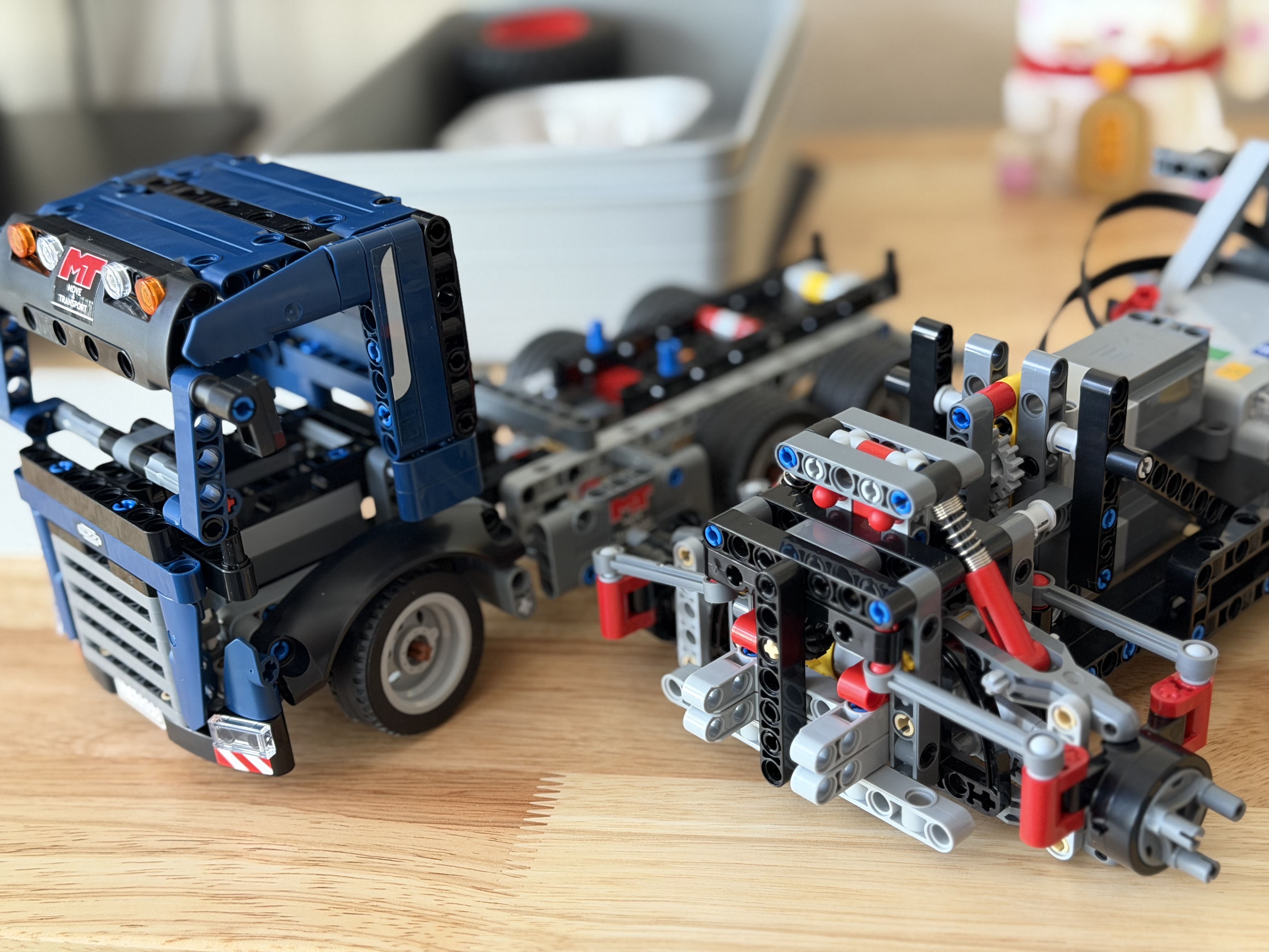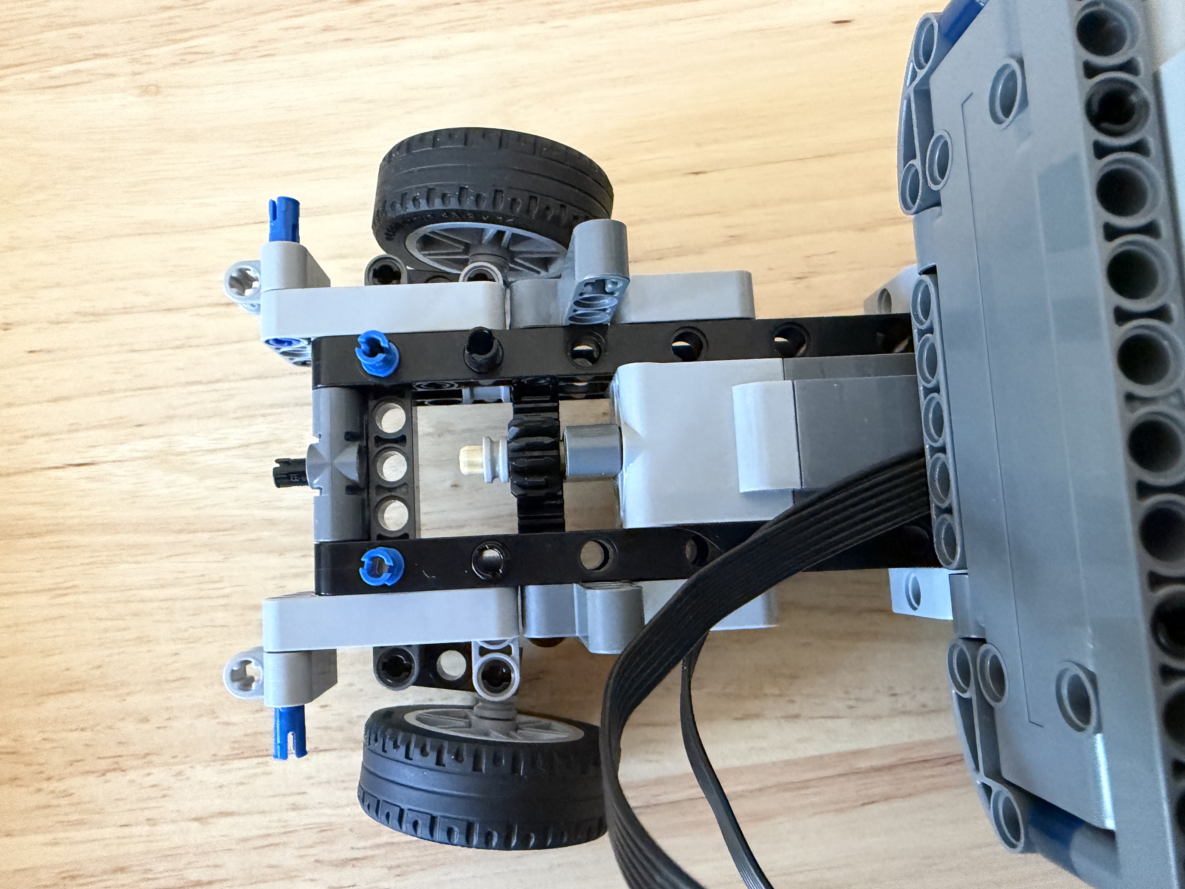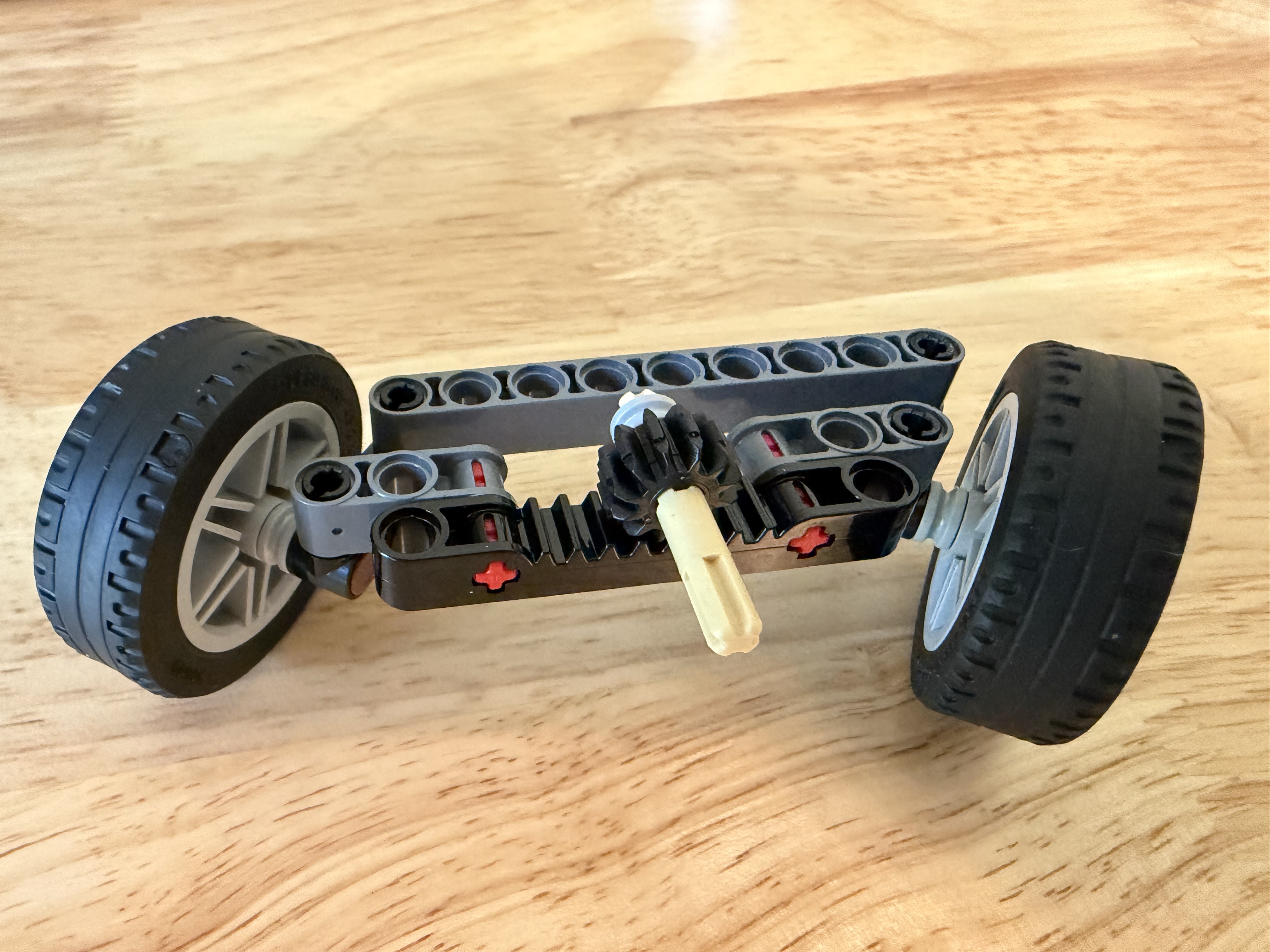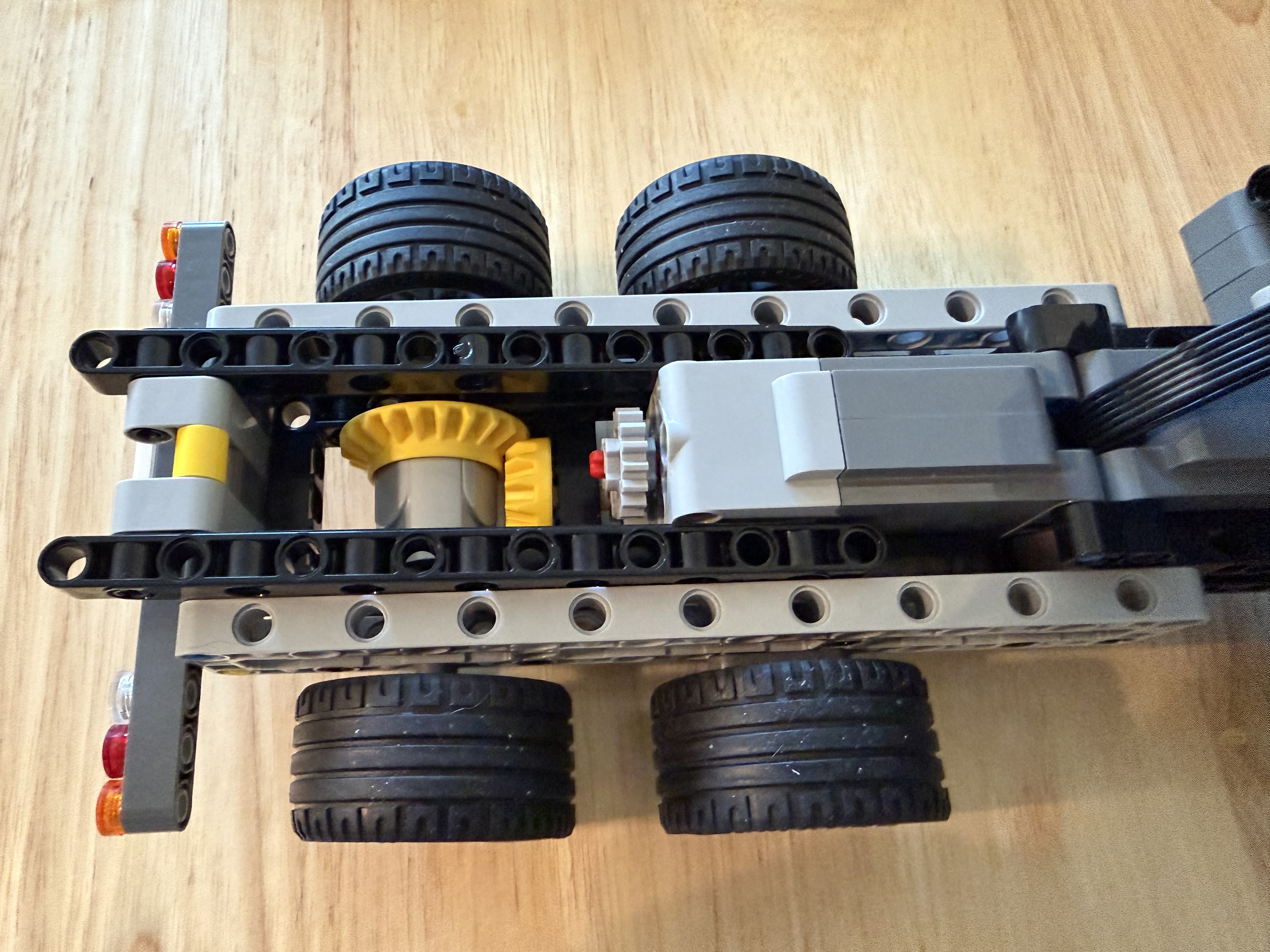 To make a motorized car move, we need both a steering system and a drive system. The driving and steering gears I have are from the LEGO Technic 42160 Audi RS Q e-tron. They’re much bigger and more complex than the cute little construction truck!